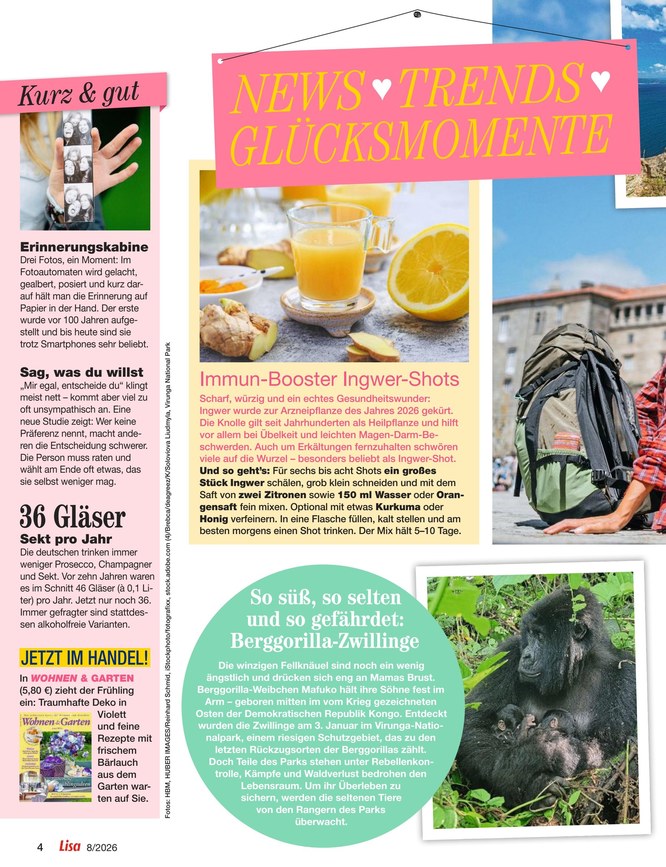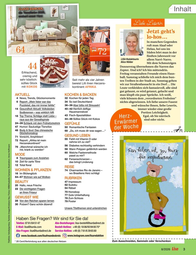 Das ePaper von Lisa hat genau wie die gedruckte Ausgabe der Zeitschrift folgende Rubriken: