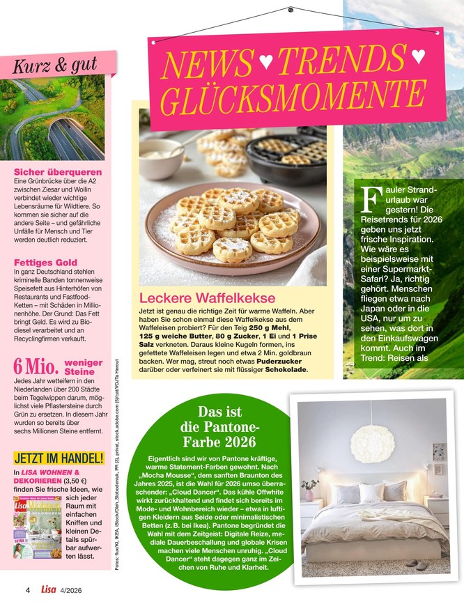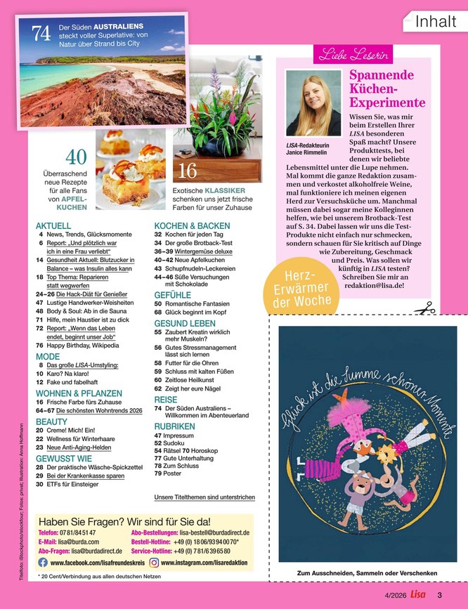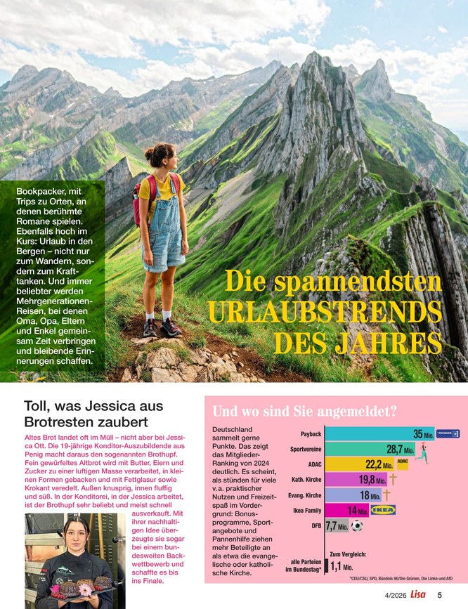 Das ePaper von Lisa hat genau wie die gedruckte Ausgabe der Zeitschrift folgende Rubriken: