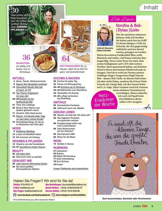 Das ePaper von Lisa hat genau wie die gedruckte Ausgabe der Zeitschrift folgende Rubriken: