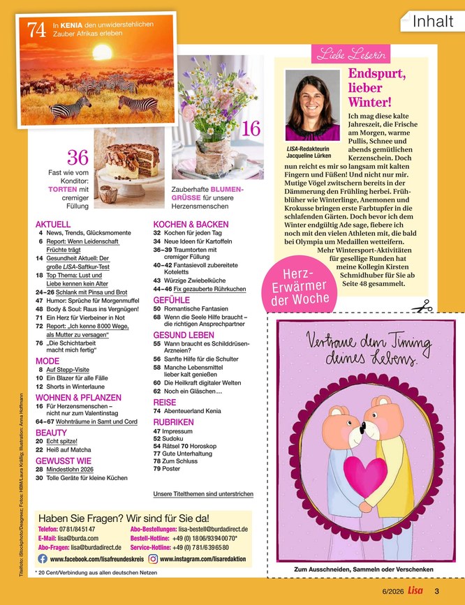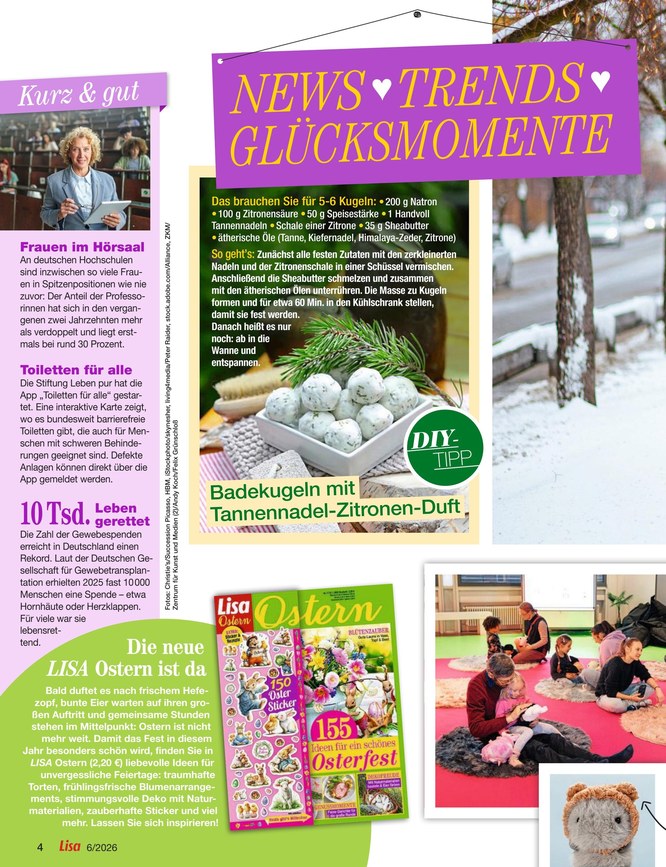 Das ePaper von Lisa hat genau wie die gedruckte Ausgabe der Zeitschrift folgende Rubriken: