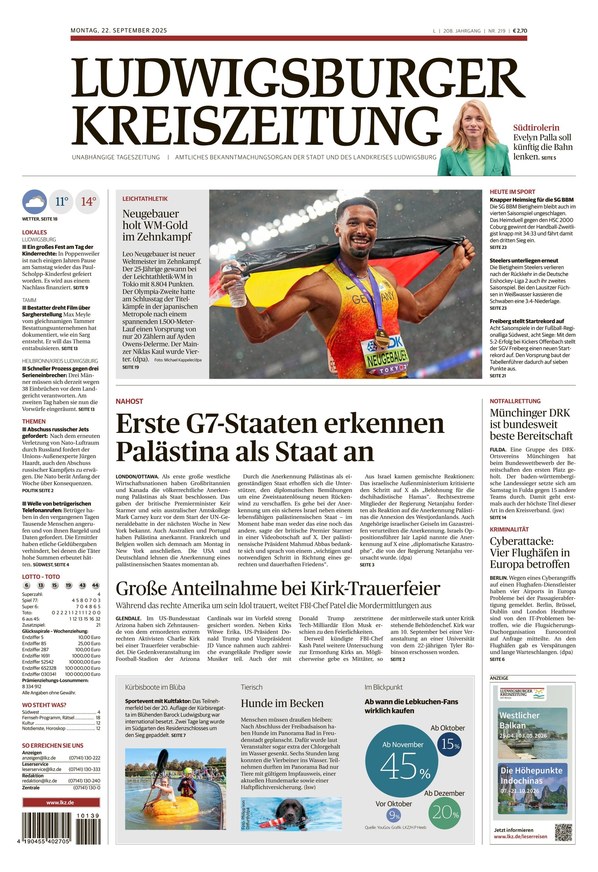 Die Ludwigsburger Kreiszeitung bietet von Montag bis Samstag Nachrichten aus der ganzen Welt und dem Landkreis sowie der Stadt Ludwigsburg.