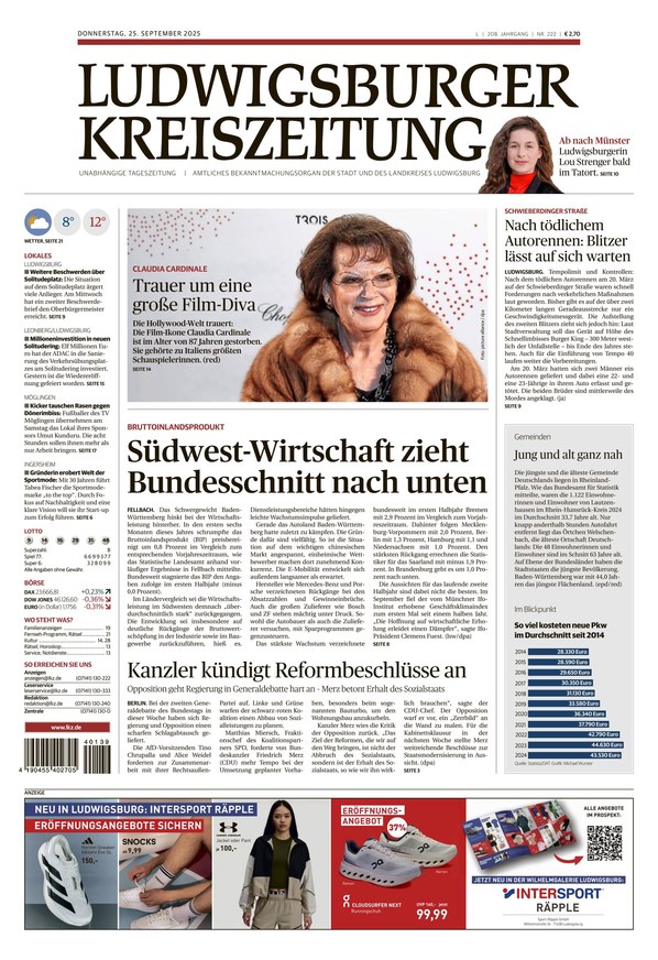 Die Ludwigsburger Kreiszeitung bietet von Montag bis Samstag Nachrichten aus der ganzen Welt und dem Landkreis sowie der Stadt Ludwigsburg.