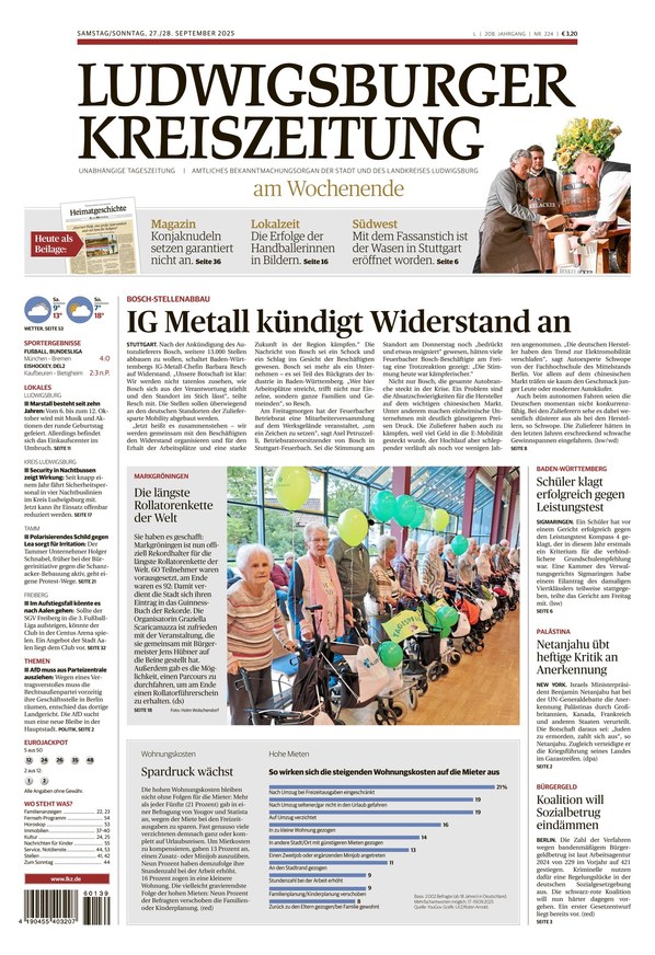 Die Ludwigsburger Kreiszeitung bietet von Montag bis Samstag Nachrichten aus der ganzen Welt und dem Landkreis sowie der Stadt Ludwigsburg.