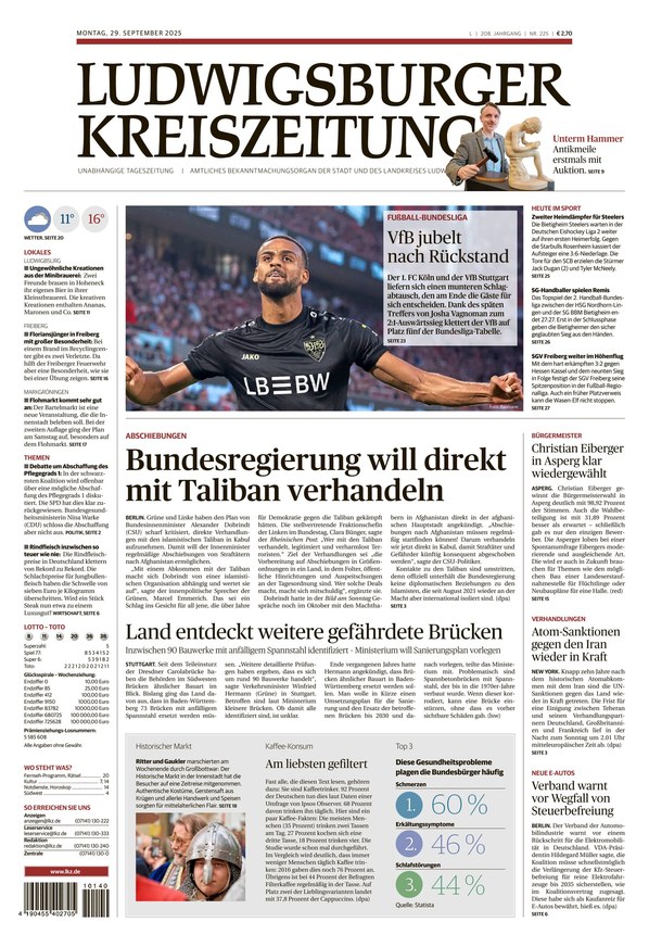 Die Ludwigsburger Kreiszeitung bietet von Montag bis Samstag Nachrichten aus der ganzen Welt und dem Landkreis sowie der Stadt Ludwigsburg.