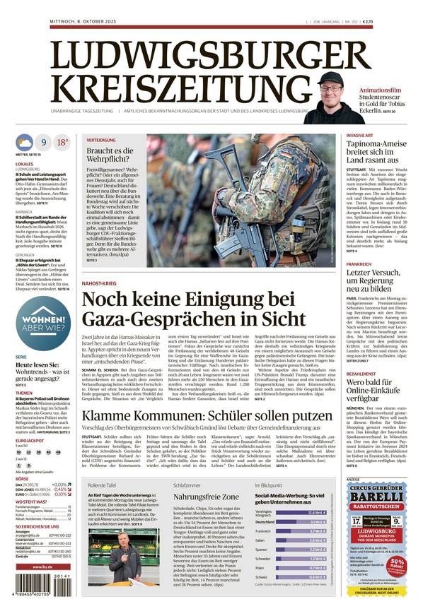 Die Ludwigsburger Kreiszeitung bietet von Montag bis Samstag Nachrichten aus der ganzen Welt und dem Landkreis sowie der Stadt Ludwigsburg.