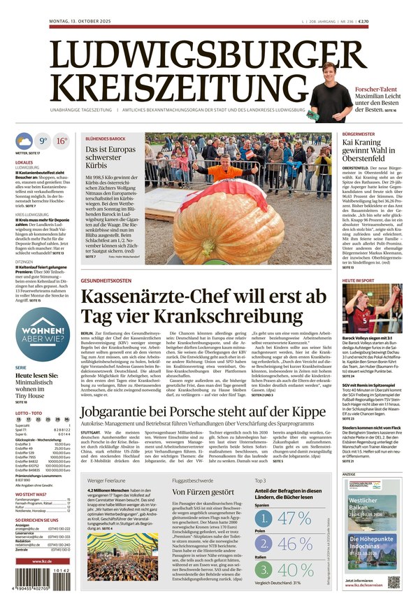 Die Ludwigsburger Kreiszeitung bietet von Montag bis Samstag Nachrichten aus der ganzen Welt und dem Landkreis sowie der Stadt Ludwigsburg.