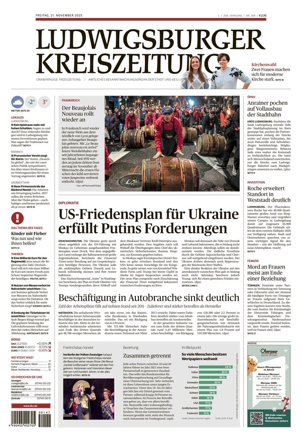 Die Ludwigsburger Kreiszeitung bietet von Montag bis Samstag Nachrichten aus der ganzen Welt und dem Landkreis sowie der Stadt Ludwigsburg.