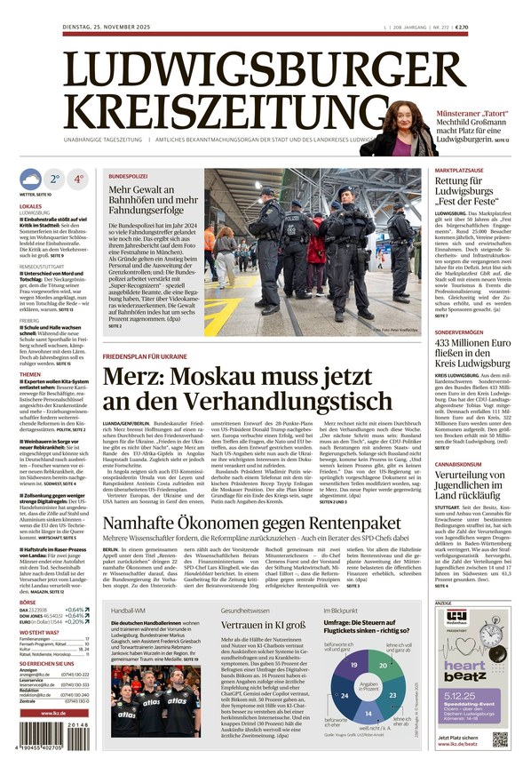 Die Ludwigsburger Kreiszeitung bietet von Montag bis Samstag Nachrichten aus der ganzen Welt und dem Landkreis sowie der Stadt Ludwigsburg.