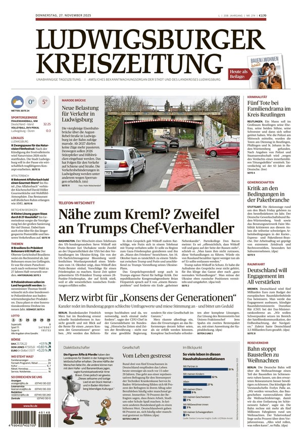 Die Ludwigsburger Kreiszeitung bietet von Montag bis Samstag Nachrichten aus der ganzen Welt und dem Landkreis sowie der Stadt Ludwigsburg.