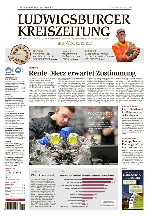 Die Ludwigsburger Kreiszeitung bietet von Montag bis Samstag Nachrichten aus der ganzen Welt und dem Landkreis sowie der Stadt Ludwigsburg.