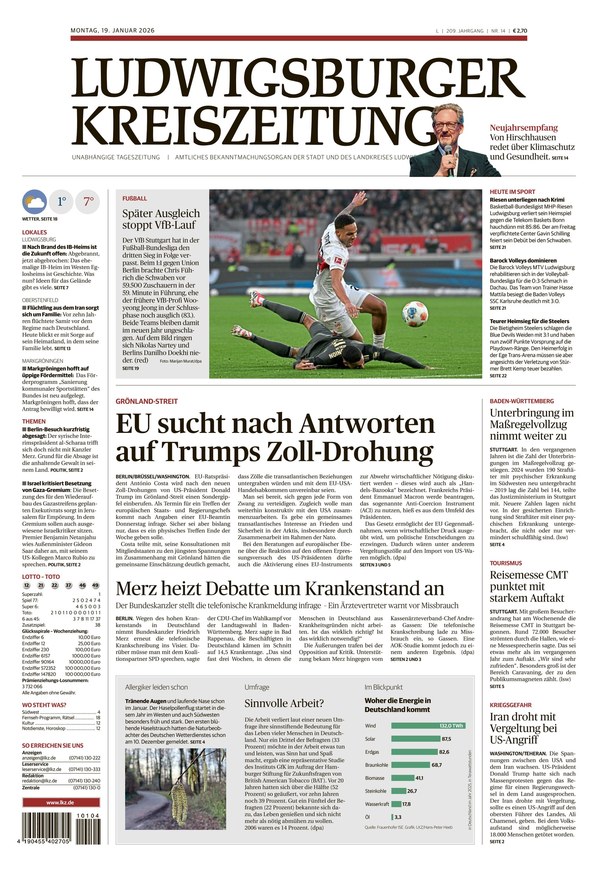 Die Ludwigsburger Kreiszeitung bietet von Montag bis Samstag Nachrichten aus der ganzen Welt und dem Landkreis sowie der Stadt Ludwigsburg.