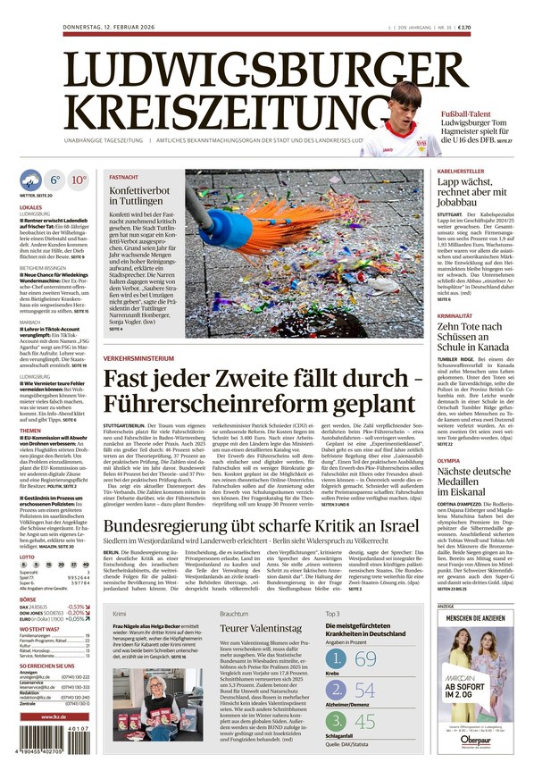 Die Ludwigsburger Kreiszeitung bietet von Montag bis Samstag Nachrichten aus der ganzen Welt und dem Landkreis sowie der Stadt Ludwigsburg.