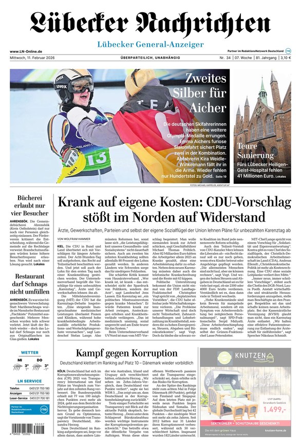 Die regionale Tageszeitung der Lübecker Nachrichten berichtet über aktuelle Neuigkeiten und Geschehnisse aus dem südöstlichen Schleswig-Holstein und dem westlichen Mecklenburg-Vorpommern. Weiterlesen...
