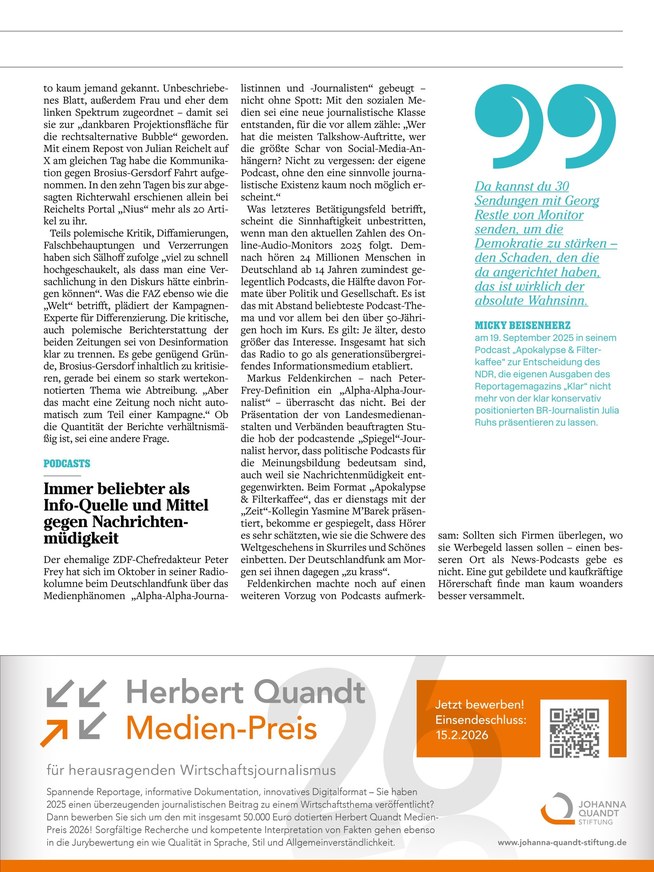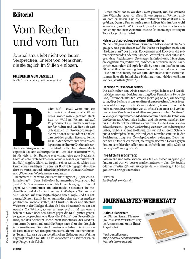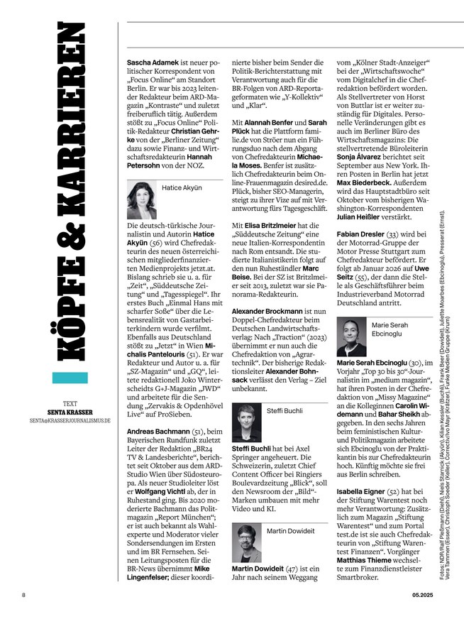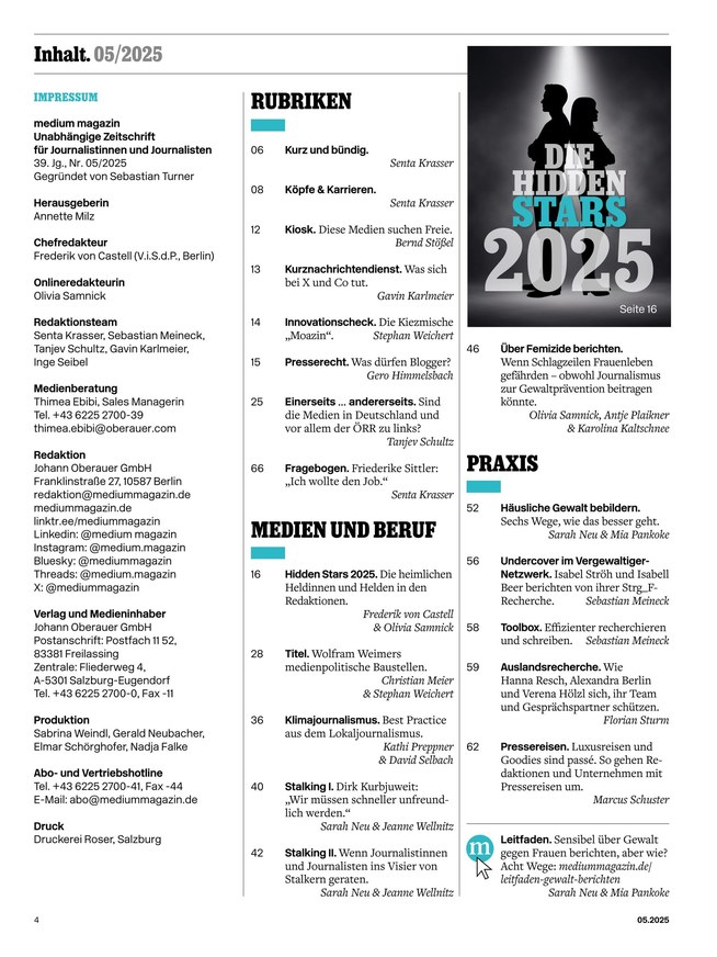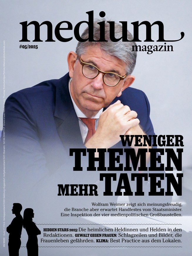 Das medium magazin ist das Magazin für Journalisten, in dem aktuelle Branchenthemen diskutiert und beleuchtet werden. Mit dem ePaper bleiben Sie über alle Trends der Medienbranche informiert. Weiterlesen...