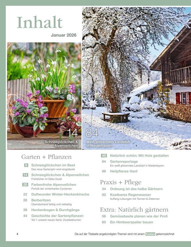 Gärtnern im Einklang mit Mutter Natur? Wie das geht, verrät die Zeitschrift Mein schöner Landgarten. Erfahren Sie im ePaper alles Wissenswerte über nachhaltige und biologische Gartenpflege. Weiterlesen...