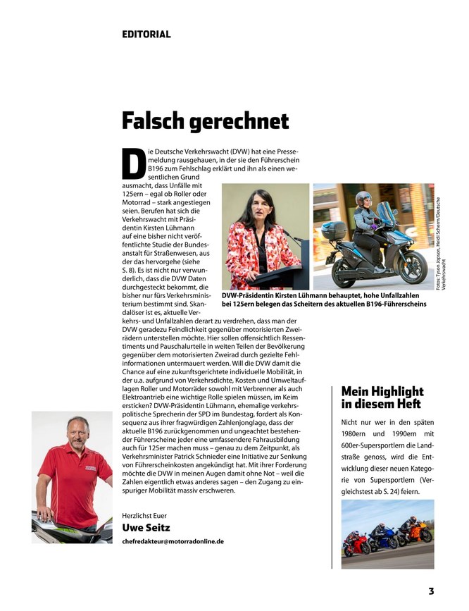 Brandaktuell und zeitgemäß - im ePaper von MOTORRAD dreht sich alles um die Welt der motorisierten Zweiräder. Europas größte Motorradzeitschrift versorgt Sie alle 14 Tage mit unabhängigen Tests und fundiertem Know-how. Weiterlesen...