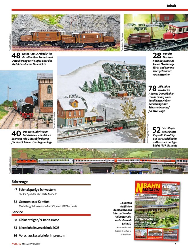 In Nenngröße N auf der richtigen Spur: Mit dem ePaper des N-BAHN MAGAZIN tauchen Modellbauer und Sammler in die packende Welt der Fahrzeuge im Maßstab 1:160 ein - lassen Sie sich von Modellbahnen und Modellanlagen der Nenngröße N begeistern! Weiterlesen...