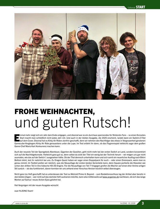 Nintendo Switch, Wii U, 3DS oder 2DS - eine oder mehrere Spielekonsolen von Nintendo lassen Ihr Gamer-Herz höher schlagen? Dann ist das N-Zone Magazin unverzichtbare Lektüre für Sie. Bleiben Sie über alle News und Trends informiert, profitieren Sie von praktischen Tipps und orientieren Sie sich an den umfangreichen Testberichten. Neben der Software, also den Spielen, steht auch die Hardware, also die Konsolen, auf dem Prüfstand. Für alle, die in Sachen Nintendo zur Fraktion Old School zählen, gibt es ebenfalls spannende Infos in der Kategorie "Retro". Im iKiosk können Sie direkt am Erscheinungstag auf das monatlich erscheinende N-Zone Magazin-ePaper zugreifen, nutzen Sie Smartphone, Tablet oder Computer zum digitalen Lesen.
