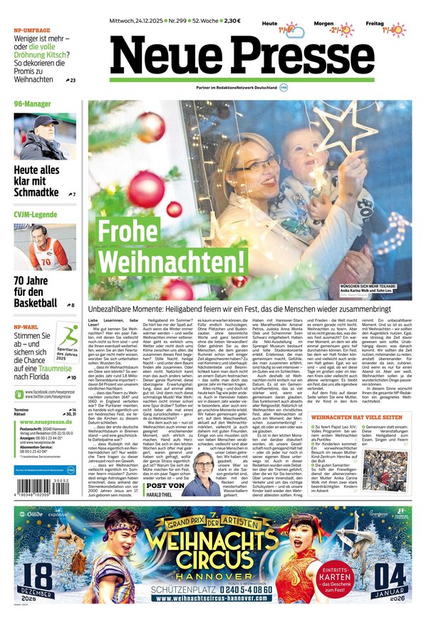 Sie möchten brandaktuelle News aus Hannover und der Region lesen? Dann greifen Sie einfach auf das ePaper hier im iKiosk zu oder laden Sie sich die aktuelle Ausgabe als PDF auf Ihr Endgerät herunter. Auch ältere Ausgaben der Neuen Presse können Sie bei uns finden, stöbern Sie dafür einfach in unserem Archiv.