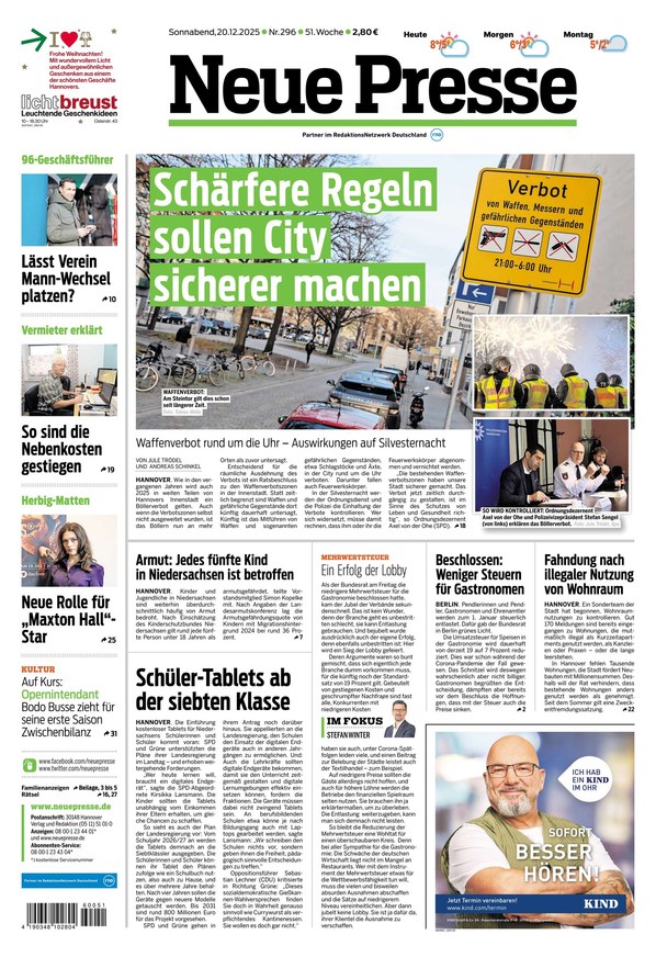 Die Neue Presse ist eine Tageszeitung für den Raum Hannover und Umgebung, die zwischen bürgerlicher und Boulevard-Zeitung angesiedelt ist. Weiterlesen...