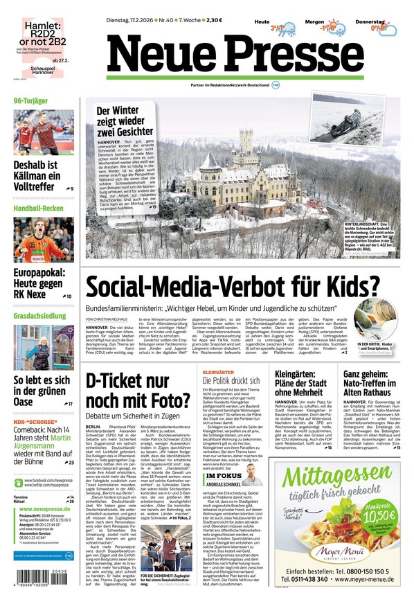 Sie möchten brandaktuelle News aus Hannover und der Region lesen? Dann greifen Sie einfach auf das ePaper hier im iKiosk zu oder laden Sie sich die aktuelle Ausgabe als PDF auf Ihr Endgerät herunter. Auch ältere Ausgaben der Neuen Presse können Sie bei uns finden, stöbern Sie dafür einfach in unserem Archiv.