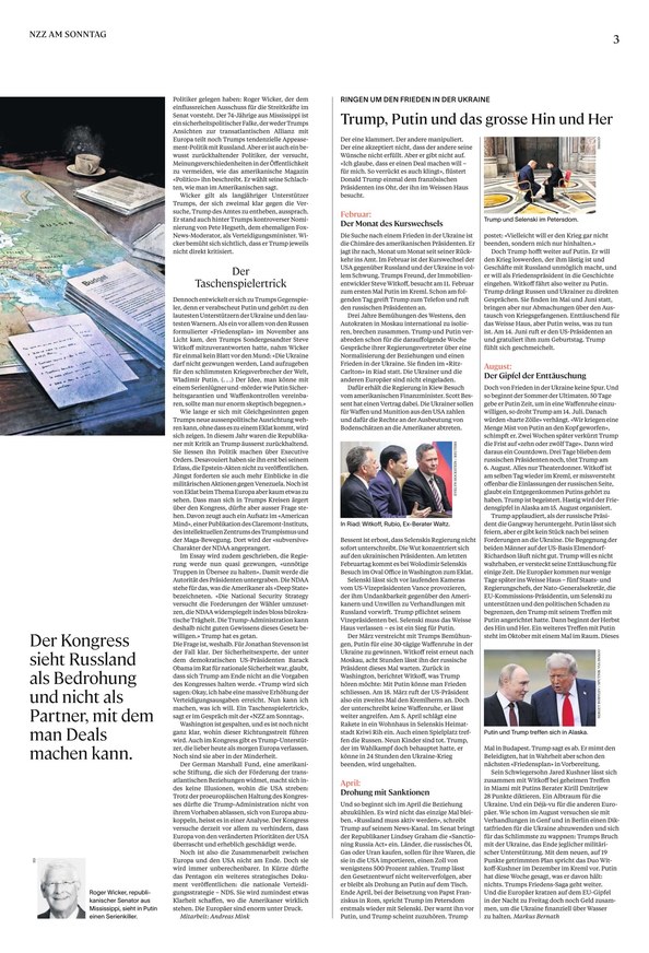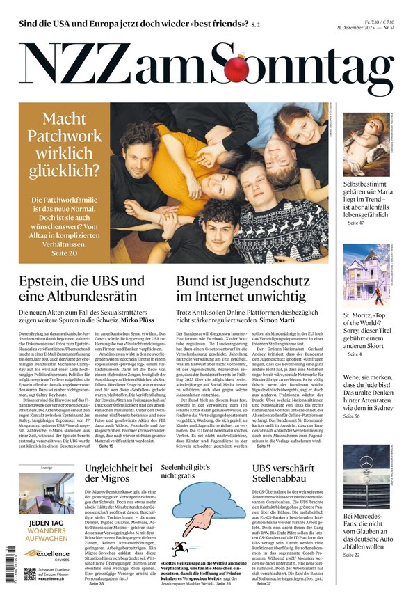 Fundierte Recherchen zu Themen, die die Welt beschäftigen, machen die «NZZ am Sonntag» zur führenden Sonntagszeitung rund um Politik und Wirtschaft, ohne die Unterhaltung zu vernachlässigen. Innovative Beilagen und Magazine ergänzen die Zeitung mit vertiefenden Informationen.