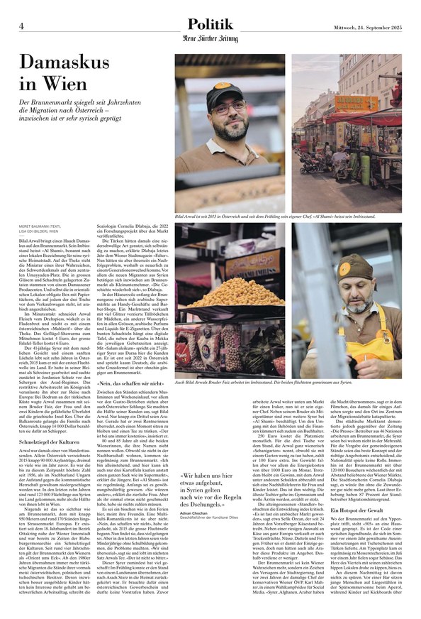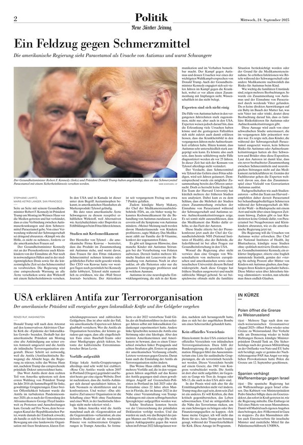 Die «Neue Zürcher Zeitung International» bietet ein breites Themenspektrum von Politik, Wirtschaft und Gesellschaft über Kultur und Technologie bis hin zu Wissenschaft und Reisen. Redaktionen in Zürich und Berlin, unterstützt von einem weltweiten Korrespondentennetzwerk, informieren aus erster Hand über globale Entwicklungen und liefern neben Nachrichten fundierte Analysen zu allen wichtigen Themen unserer Zeit.