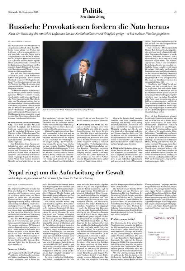Die Neue Zürcher Zeitung International steht seit 1780 für eine fundierte, präzise und ausführliche Berichterstattung über das internationale, nationale und regionale Geschehen. Weiterlesen...