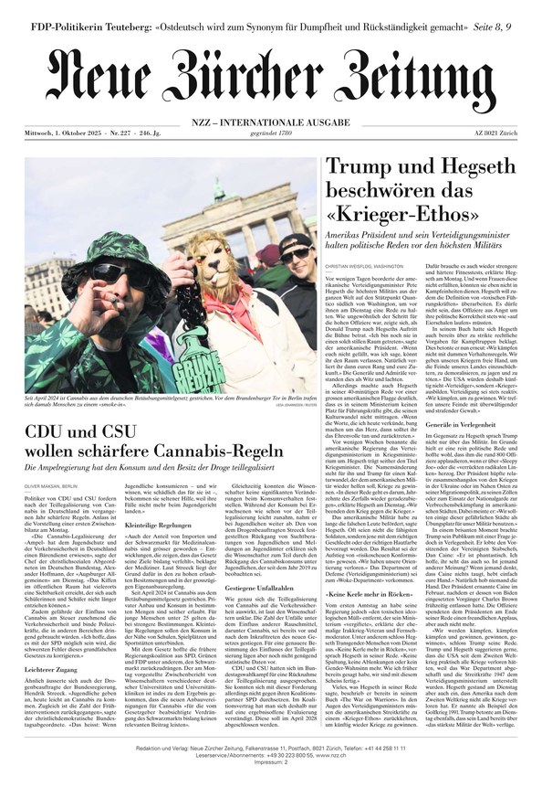Als eine der ältesten Tageszeitungen Europas steht die «Neue Zürcher Zeitung International» für Qualitätsjournalismus aus der Schweiz mit neutralem Blick auf das Weltgeschehen.