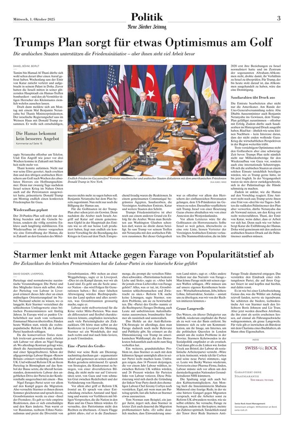 Die Neue Zürcher Zeitung International steht seit 1780 für eine fundierte, präzise und ausführliche Berichterstattung über das internationale, nationale und regionale Geschehen. Weiterlesen...