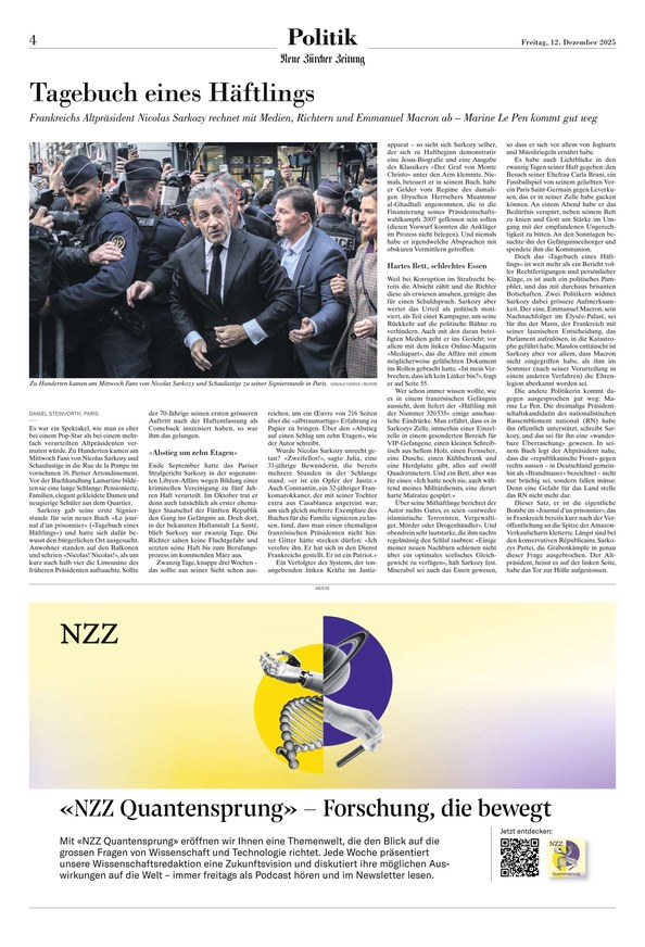 Die Neue Zürcher Zeitung International steht seit 1780 für eine fundierte, präzise und ausführliche Berichterstattung über das internationale, nationale und regionale Geschehen. Weiterlesen...
