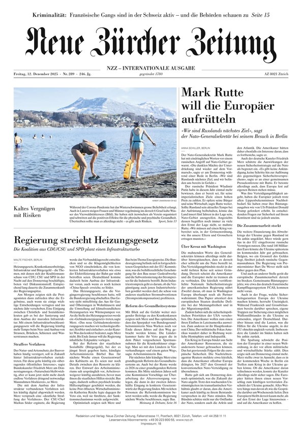 Seit 1780 ist die «Neue Zürcher Zeitung International» eine Institution, die durch sorgfältig recherchierten und klar analysierenden Journalismus Vertrauen und Respekt geniesst. Mit zuverlässiger, facettenreicher Berichterstattung und liberalen, unabhängigen Perspektiven hat sie sich als unverzichtbare Informationsquelle für anspruchsvolle Leserinnen und Leser etabliert. .