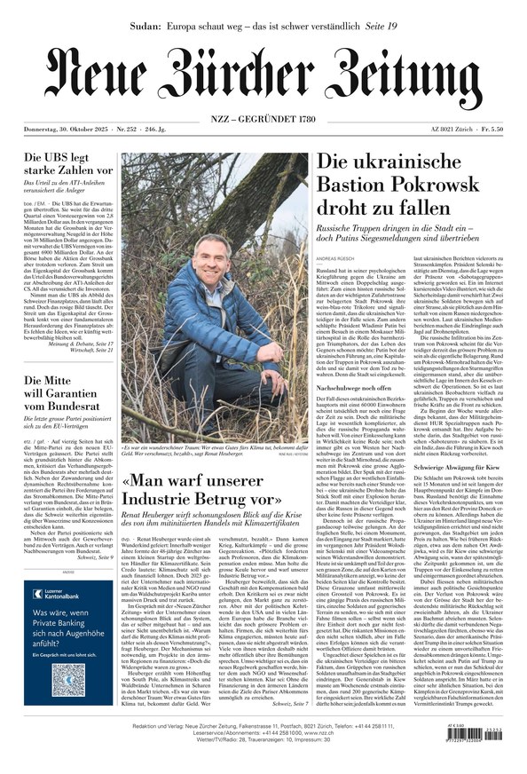 Entdecken Sie die «Neue Zürcher Zeitung»: mit Artikeln aus Politik, Wirtschaft, Wissenschaft und Kultur – immer mit dem Schweizer Blick auf globale Zusammenhänge. Die «Neue Zürcher Zeitung» erscheint montags bis samstags als Printausgabe und als E-Paper. Weiterlesen...