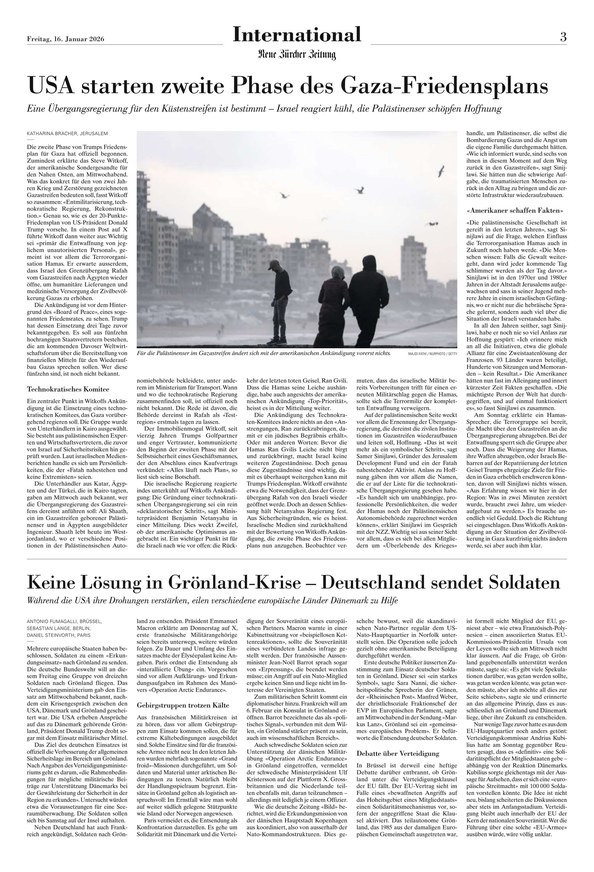Die «Neue Zürcher Zeitung» bietet ein breites Themenspektrum von Politik, Wirtschaft und Gesellschaft über Kultur und Technologie bis hin zu Wissenschaft und Reisen. Redaktionen in Zürich und Berlin, unterstützt von einem weltweiten Korrespondentennetzwerk, informieren aus erster Hand über globale Entwicklungen und liefern neben Nachrichten fundierte Analysen zu allen wichtigen Themen unserer Zeit.