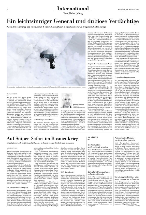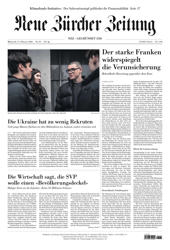 Entdecken Sie die «Neue Zürcher Zeitung»: mit Artikeln aus Politik, Wirtschaft, Wissenschaft und Kultur – immer mit dem Schweizer Blick auf globale Zusammenhänge. Die «Neue Zürcher Zeitung» erscheint montags bis samstags als Printausgabe und als E-Paper. Weiterlesen...