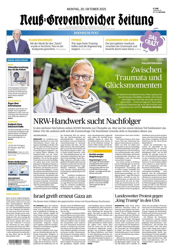 Die Neuss-Grevenbroicher Zeitung (NGZ) versorgt Sie von Montag bis Samstag mit aktuellen Regionalnachrichten aus Nordrhein-Westfalen und News aus aller Welt: Bleiben Sie mit dem ePaper Ihrer Tageszeitung über alle relevanten Themen in den Bereichen Politik, Wirtschaft, Kultur und Sport informiert. Lesen Sie das NGZ-ePaper am Smartphone, Tablet oder Computer - wann Sie wollen und wo Sie wollen.