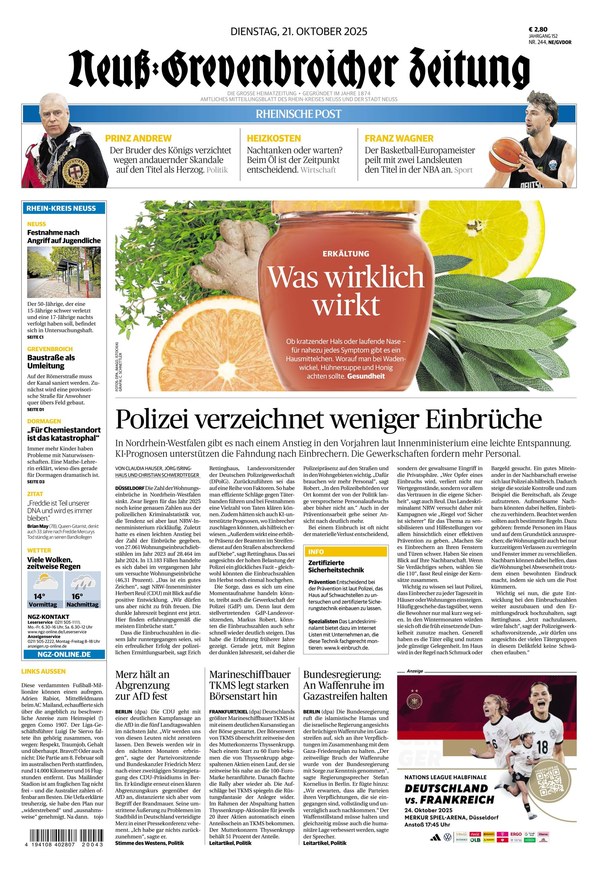 Als Tageszeitung für den Rhein-Kreis Neuss berichtet die Neuss-Grevenbroicher Zeitung über alle wichtigen Nachrichten der Region. Das ePaper bietet Ihnen maximalen Genuss beim Zeitungslesen und viele Vorteile! Weiterlesen...