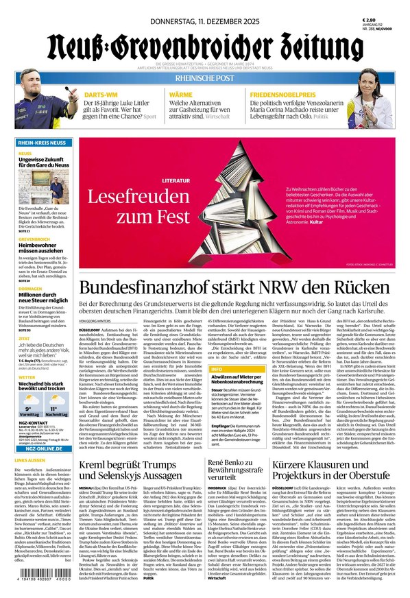 Als Tageszeitung für den Rhein-Kreis Neuss berichtet die Neuss-Grevenbroicher Zeitung über alle wichtigen Nachrichten der Region. Das ePaper bietet Ihnen maximalen Genuss beim Zeitungslesen und viele Vorteile! Weiterlesen...