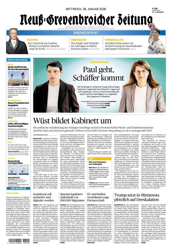 Als Tageszeitung für den Rhein-Kreis Neuss berichtet die Neuss-Grevenbroicher Zeitung über alle wichtigen Nachrichten der Region. Das ePaper bietet Ihnen maximalen Genuss beim Zeitungslesen und viele Vorteile! Weiterlesen...