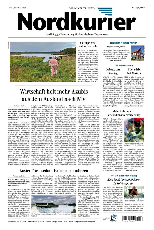 Vom 20.10.2025 Inklusive aller Regionalausgaben und Beilagen.