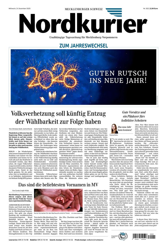 Vom 31.12.2025 Inklusive aller Regionalausgaben und Beilagen.