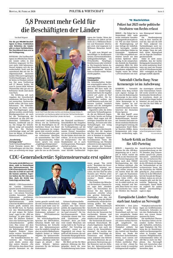 Vom 16.02.2026 Inklusive aller Regionalausgaben und Beilagen.