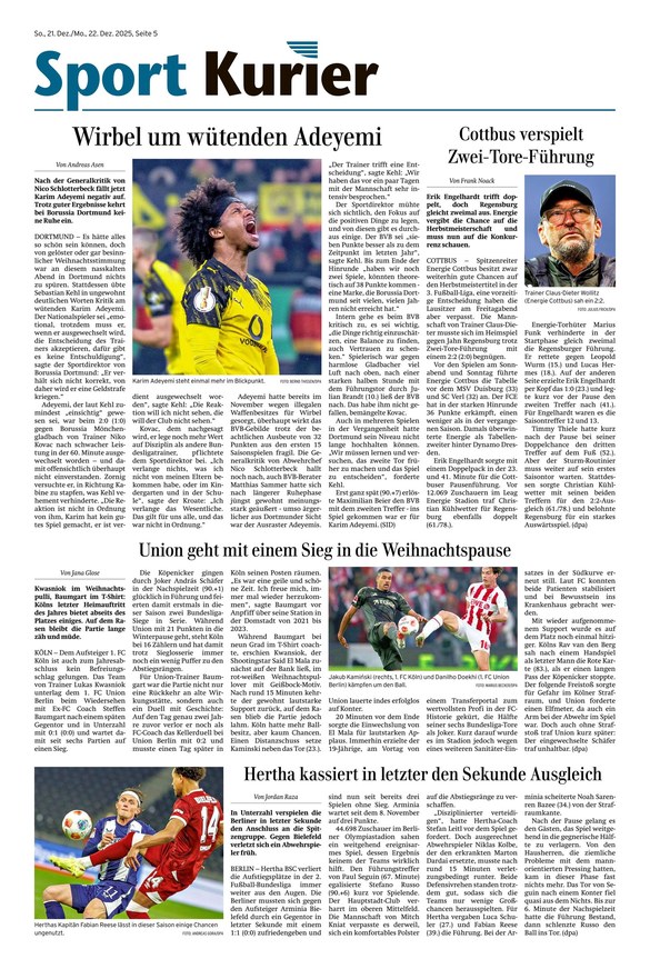 Vom 21.12.2025 Inklusive aller Regionalausgaben und Beilagen.