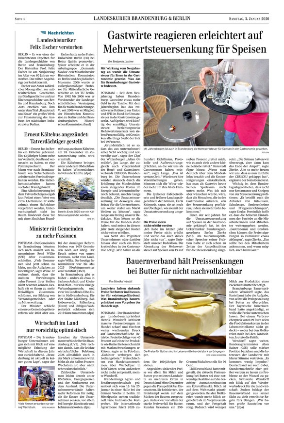 Vom 03.01.2026 Inklusive aller Regionalausgaben und Beilagen.
