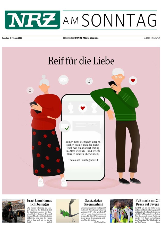 Zusätzlich gibt es die Seite "Heute vor 10 Jahren", auf der Sie die Titelseite der NRZ vom gleichen Datum vor zehn Jahren sehen. Diese kleine Zeitreise bildet den Abschluss der Sonntagslektüre und regt zum Nachdenken an. Herausgegeben werden NRZ und NRZ am SONNTAG von der FUNKE MEDIEN NRW GmbH.