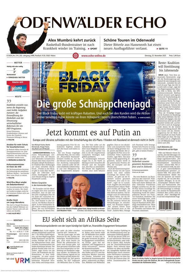 Das Odenwälder Echo ist Ihre traditionsreiche Informationsquelle, die mit umfassender Berichterstattung aus dem Odenwaldkreis alle Facetten von aktuellen lokalen Nachrichten über politische Entwicklungen und Wirtschaftsthemen bis hin zu Kultur, Sport und gesellschaftlichen Ereignissen abdeckt.