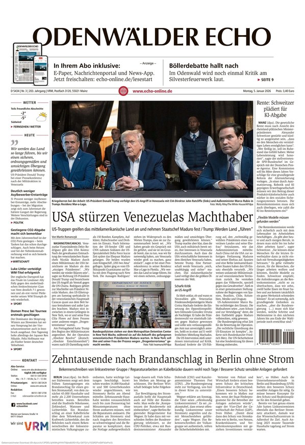 Das Odenwälder Echo ist Ihre traditionsreiche Informationsquelle, die mit umfassender Berichterstattung aus dem Odenwaldkreis alle Facetten von aktuellen lokalen Nachrichten über politische Entwicklungen und Wirtschaftsthemen bis hin zu Kultur, Sport und gesellschaftlichen Ereignissen abdeckt.