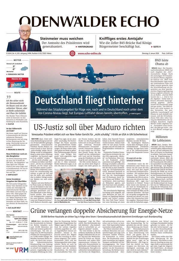 Das Odenwälder Echo ist Ihre traditionsreiche Informationsquelle, die mit umfassender Berichterstattung aus dem Odenwaldkreis alle Facetten von aktuellen lokalen Nachrichten über politische Entwicklungen und Wirtschaftsthemen bis hin zu Kultur, Sport und gesellschaftlichen Ereignissen abdeckt.