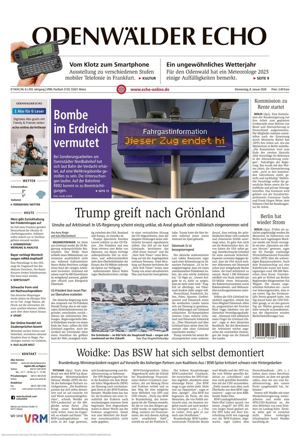 Das Odenwälder Echo ist Ihre traditionsreiche Informationsquelle, die mit umfassender Berichterstattung aus dem Odenwaldkreis alle Facetten von aktuellen lokalen Nachrichten über politische Entwicklungen und Wirtschaftsthemen bis hin zu Kultur, Sport und gesellschaftlichen Ereignissen abdeckt.