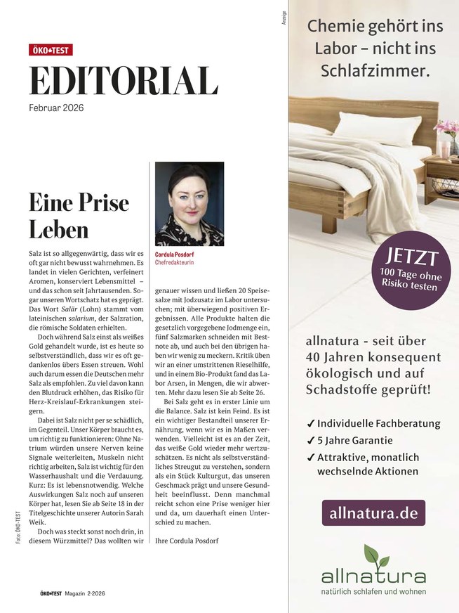 Mit Öko-Test bleiben Sie auf dem aktuellen Stand der Dinge und bilden sich Seite für Seite weiter. Hinterfragen Sie Altbewährtes mit Hilfe der neuen Tests aus Ihrem Verbrauchermagazin. Brauchen Sie eine neue Matratze? Welches ist das beste Mineralwasser? Was hat es mit festen Shampoos auf sich? Und welcher vegane Brotaufstrich ist am leckersten?